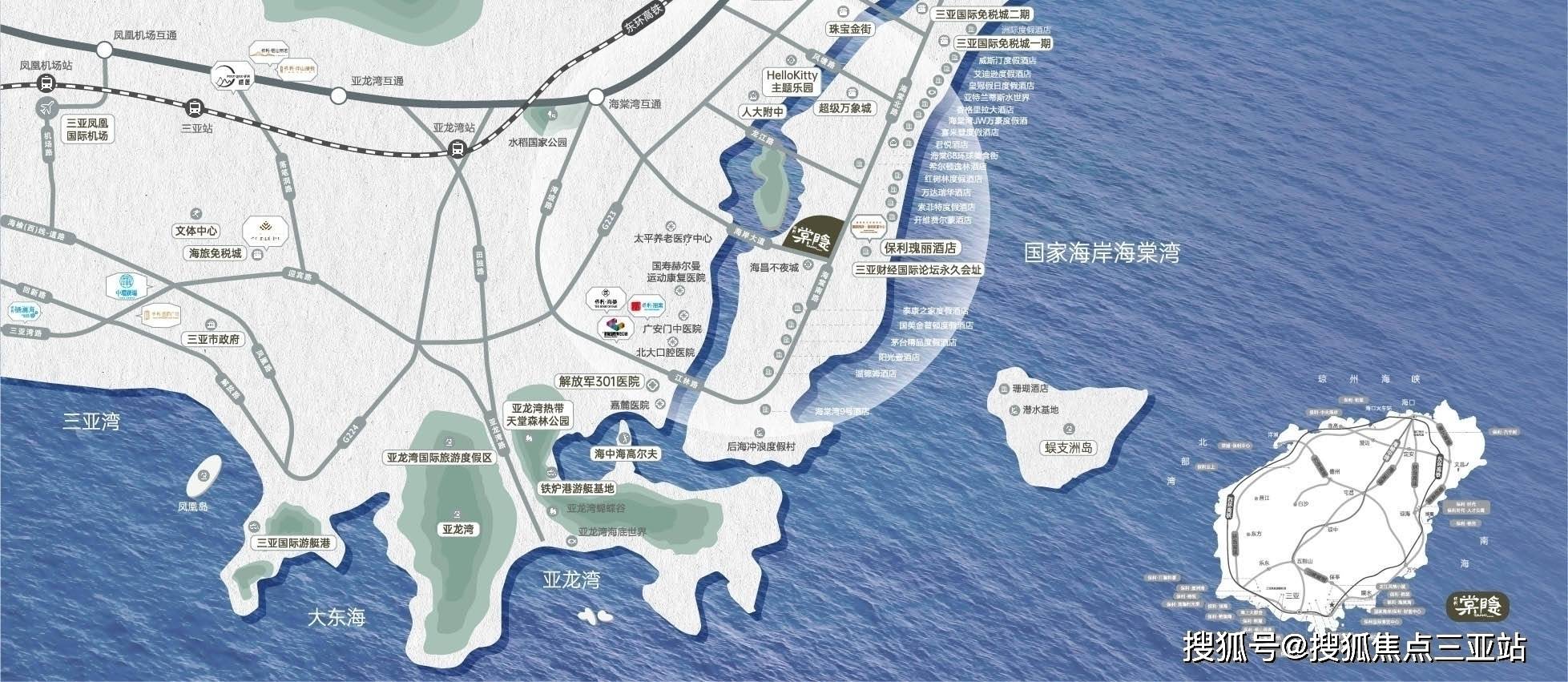 22公里海岸线,国际鼎级品牌滨海酒店带,规划32家5星级酒店和2家7星级酒店,汇集亚特兰蒂斯、红树林、艾迪逊、保利瑰丽等酒店。